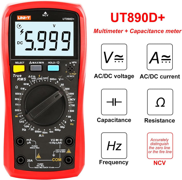 UNI-T UT890D+ True RMS 6000 counts AC/DC Live function NCV Digital Multimeter With LCD Backlight