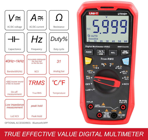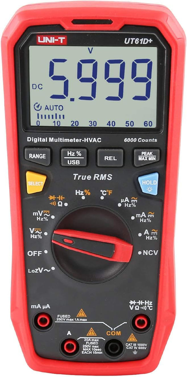UNI-T UT61E+ Digital Multimeter - Affordable 22000 Counts Display, NCV, hFE, True RMS AC/DC, Auto Range - Ideal for Electronics, Automotive, and Industrial Use