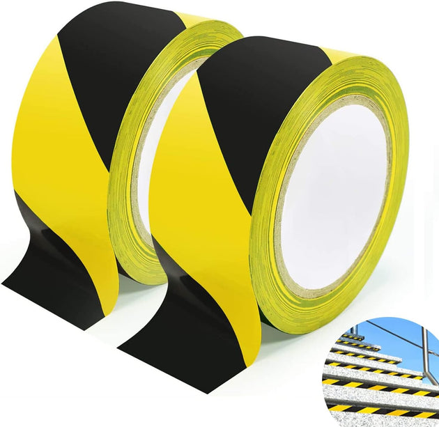 Warning Safety Stripe Tape, 2 Inch x 36 Yards, Black and Yellow, High-Visibility, 2 Rolls