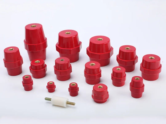 Material: The conductive bar is made of brass (or sometimes copper), and the insulators are plastic.