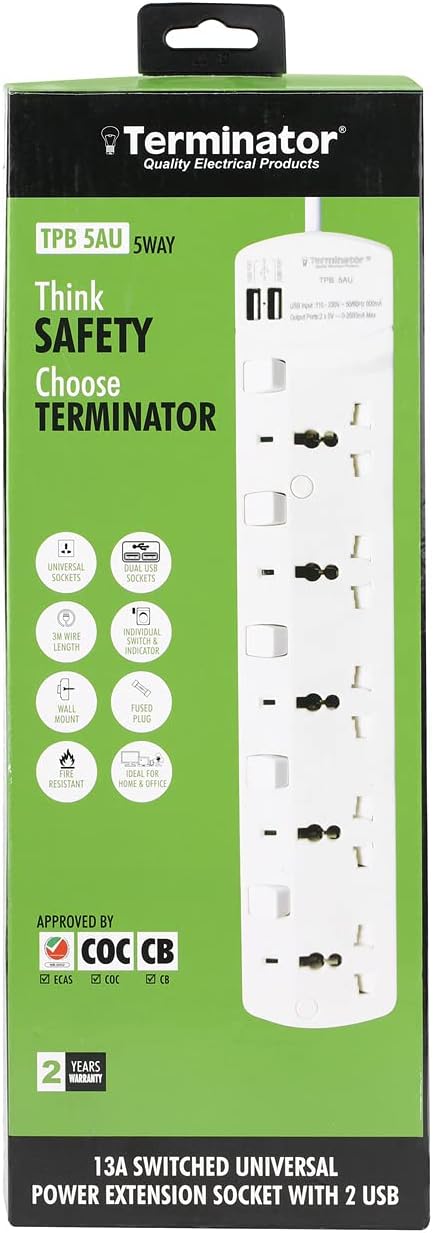 Special features individual switches, sealed blister packing, ESMA approval, 3-meter cable length, USB ports with switchindividual switches, sealed blister packing, ESMA approval, 3-meter cable length, USB ports with switch